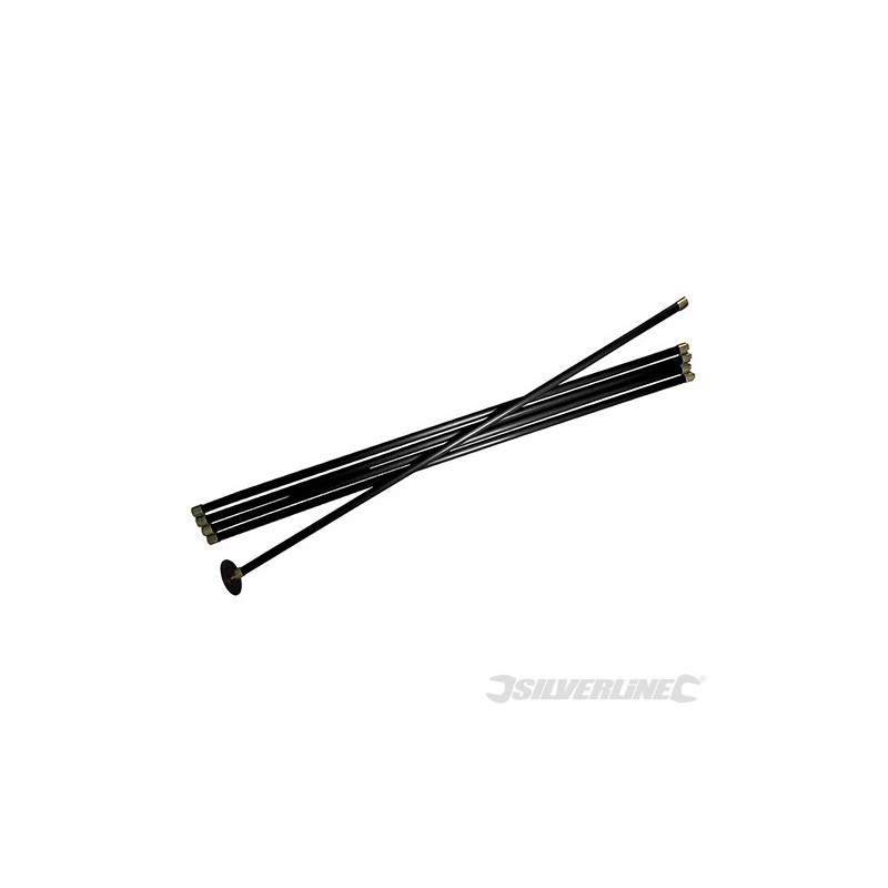Univerzální pozinkované spoje, vlisované a přinýtované pro extra odolnost. Kompletní s gumovým zvonem a dvojitou červovitou hlavou. 5 x 2 m 25 mm v průměru polypropylenových prutů dodávaných ve vodě odolném, zavazovacím vaku. Kompatibilní s kompletním Silverline čistící prut příslušenstvím.