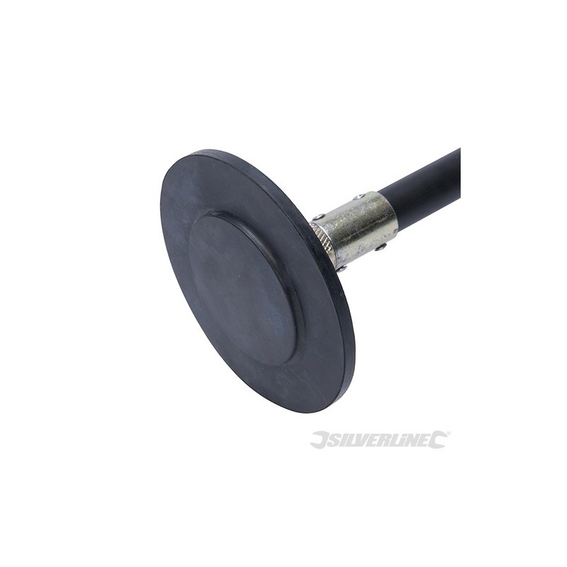 100mm dia rubber plunger with metal Lock Rod connector. Builds up pressure and forces through obstructions in drain pipes. Interlocking fittings enable rods to be rotated in either direction. Compatible with Silverline Lock Rod Drain Rod System (278373).