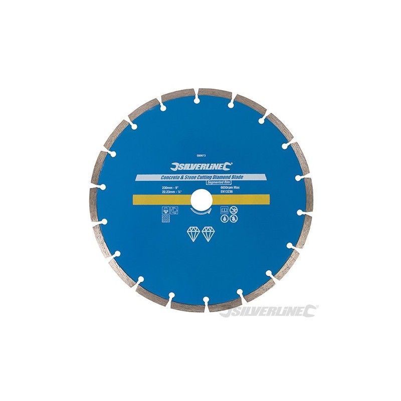 Kvalitní. Vhodné pro řezání střešních tašek, betonu s vysokou hustotou, obrubníků, terasových desek, trubek, cihel, železobetonu a překladů. Odpovídá normě EN 13236.