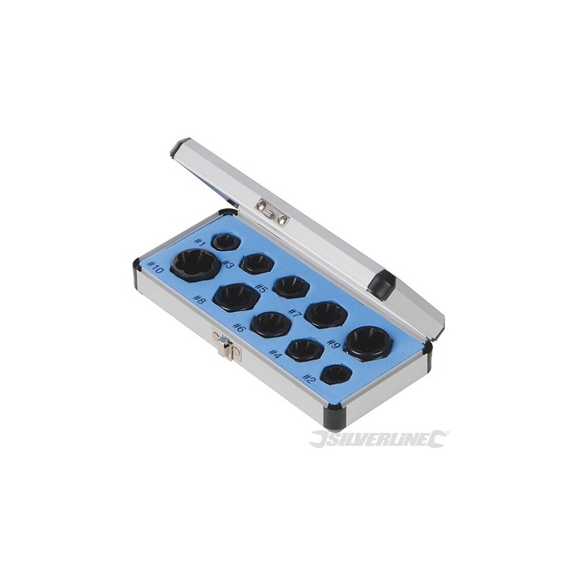 Spirálové řezané zuby umožňují odstranit strhnuté nebo poškozené šrouby. Lze také použít na hlavy šroubů a svorníků. Hlava sedí na velikosti 9, 10, 11, 12, 13, 14, 15, 16, 17 a 19 mm.