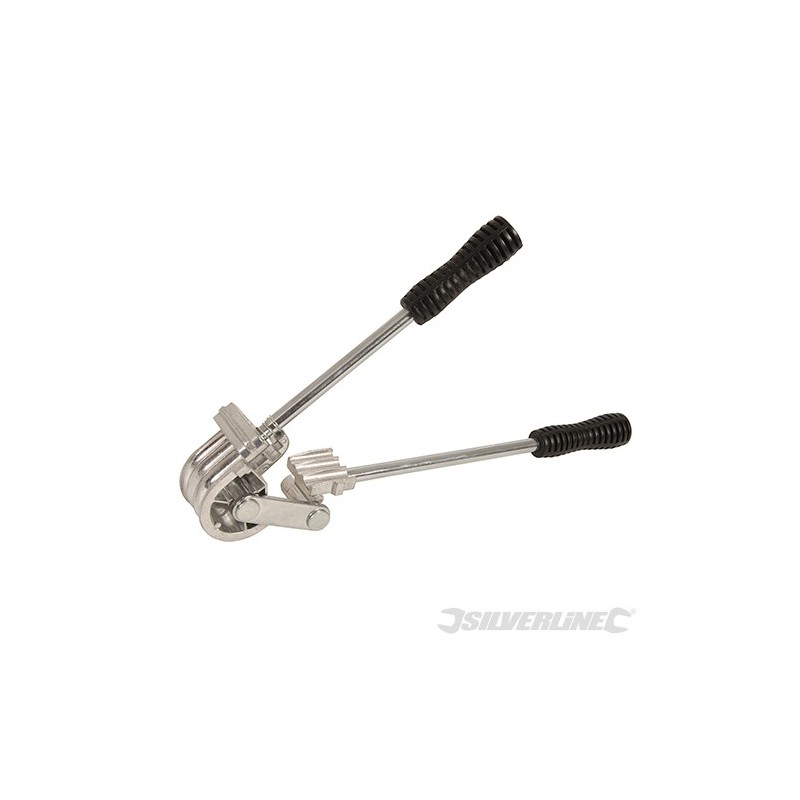 Strong die-cast aluminium body and heavy duty steel hinge. Bends 8, 10 and 12mm copper and aluminium tubing. Durable steel handles and ergonomic soft-grip handles. Guide with 0, 30, 60, 90, 120, 150 and 180° markings. Spring-loaded, tiltable hold-down mechanism.