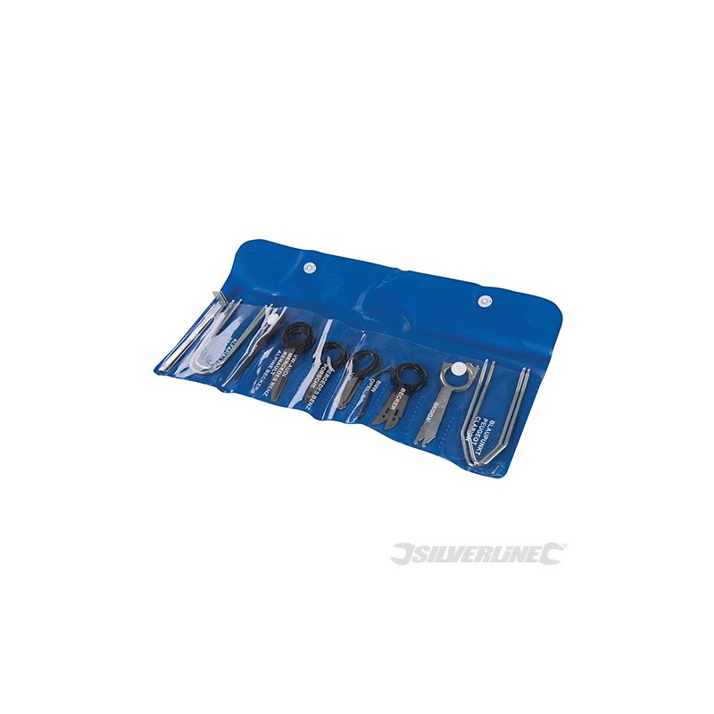 Stainless steel keys. Removes a wide range of car radios. Suitable for removing radios from brands such as VW, Audi, Mercedes Benz, Skoda, BMW and Ford. Also removes branded radios such as Becker, Pioneer, JVC and Blaupunkt. Keys are supplied in a secure, plastic wallet.