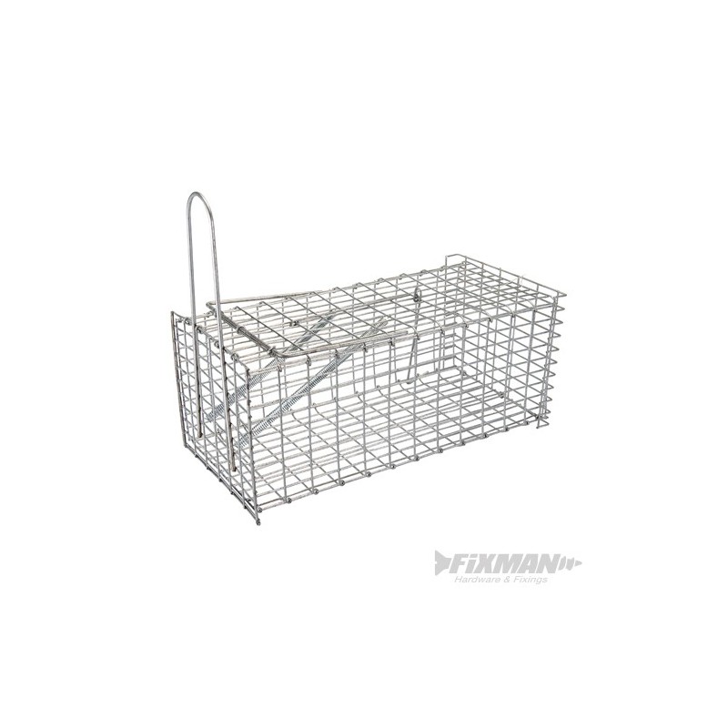 Galvanizovaná pletivová klec s pružinou. Chycená zvířata můžete vypustit na vhodném místě. K opakovanému použití. D x Š x V: 300 x 150 x 130 mm.