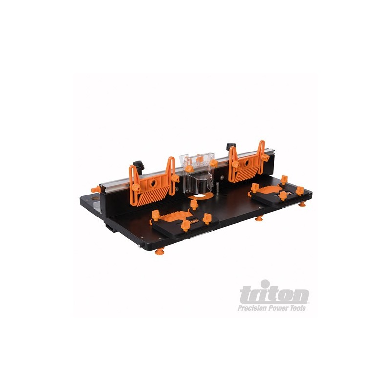 Přesný frézovací stůl speciálně vyvinutý pro Pracovní centrum WX7. Kompatibilní se všemi třemi Triton horními frézami (TRA001, MOF001 a JOF001) pro tvarování, hoblování, falcování, hloubení, tvarování říms a drážek. Vodící lišta a nastavitelné boční lišty z extrudovaného hliníku. Obsahuje mikro nastavení, rotační distanční podložky,