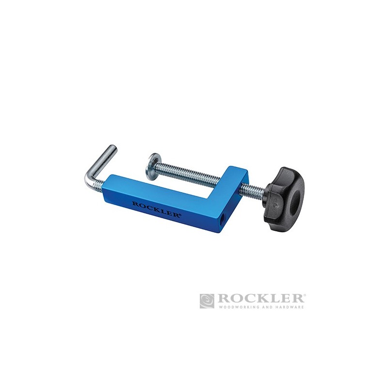 Rigid aluminium body with steel threaded components. Range of travel 12.4mm - 146mm (1/2" - 5-3/4"). Clamp arms fit into 9.5mm (3/8") holes in the top of the auxiliary fence. Secures shop-made auxiliary fences to existing fences without having the clamp interfere with the workpiece. Compact and lightweight.