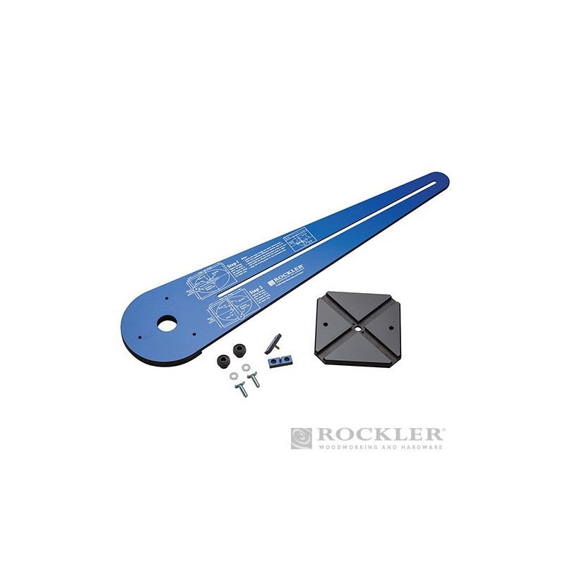 Durable 6mm (1/4") phenolic material. Single pivot can be locked to make circles up to 1.32m (52") diameter. Creates wide range of circles and ellipses. Comes with jig arm, jig base, two dovetail keys and two locking pivots. Minimum circle diameter 235mm (9-1/4"). Can be used with vast majority of plunge routers.