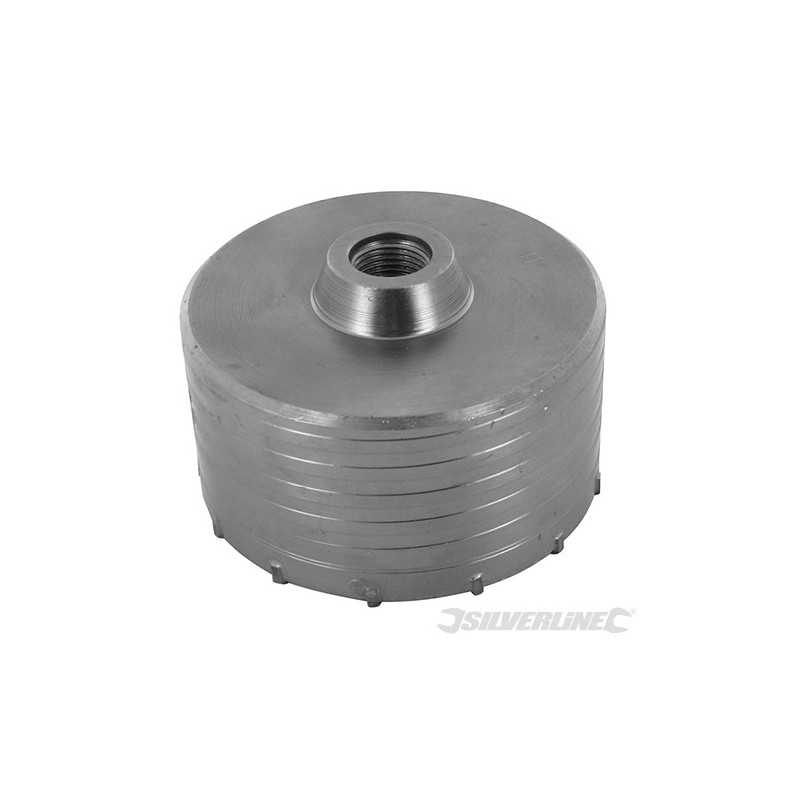 Heavy duty steel body core drill with TCT cutting tips. Ideal for cutting clean holes in burnt clay brick, sand lime brick, asphalt, concrete and aerated concrete blocks. For use with 1/2" BSP compatible arbors and drills equipped with a safety clutch. Can be used in hammer and rotational modes.