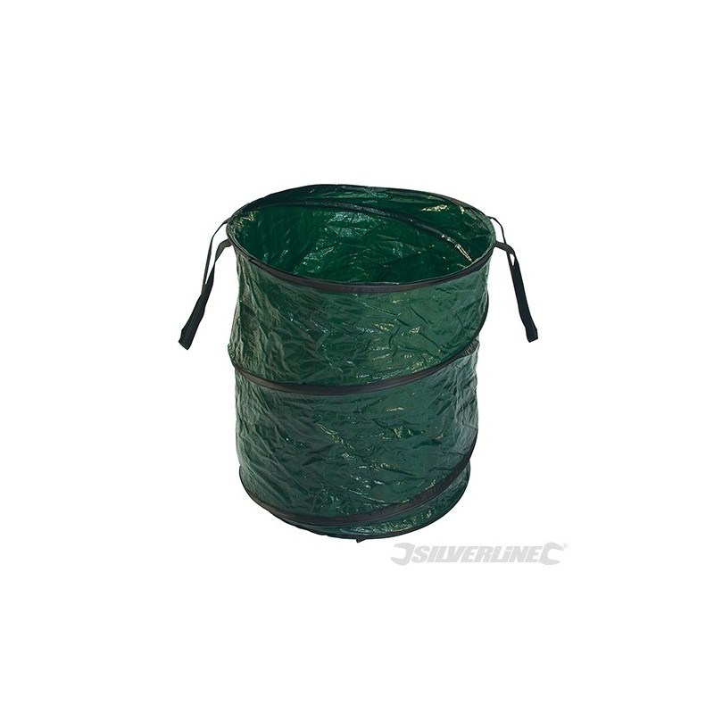 Double-laminated, UV-stabilised, 100gsm woven polyethylene. Tear-resistant, sprung-loaded body. Webbing handles (2 x for lifting and 1 x for tipping). Toggle clips for secure, collapsed storage. For collecting garden waste, including leaves and grass cuttings.