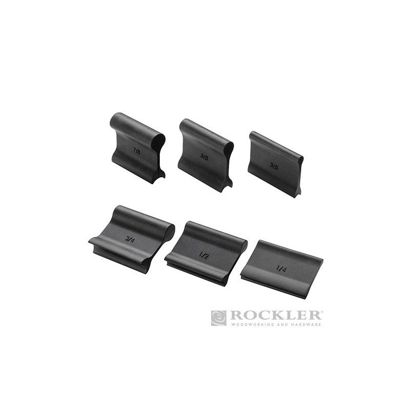 Double-ended contour sanding blocks for easy sanding of concave and convex shapes without distorting or diminishing profile. Ends are connected by a narrow flexible section for comfortable grip. Made from flexible rubber that adapts to minor variations in diameter. Grippy texture prevents sandpaper from slipping and hand fatigue. Set includes six blocks with inside/outside diameters of 6, 10, 13, 16, 19 and 22mm (1/4, 3/8, 1/2, 5/8, 3/4 and 7/8"). Diameters are moulded into the rubber for easy selection.