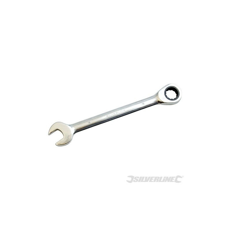 Hardened and tempered chrome vanadium metric spanner with mirror-polished finish. Chrome plated for corrosion resistance. 5° ratchet action. Provides easy access in tight spaces.