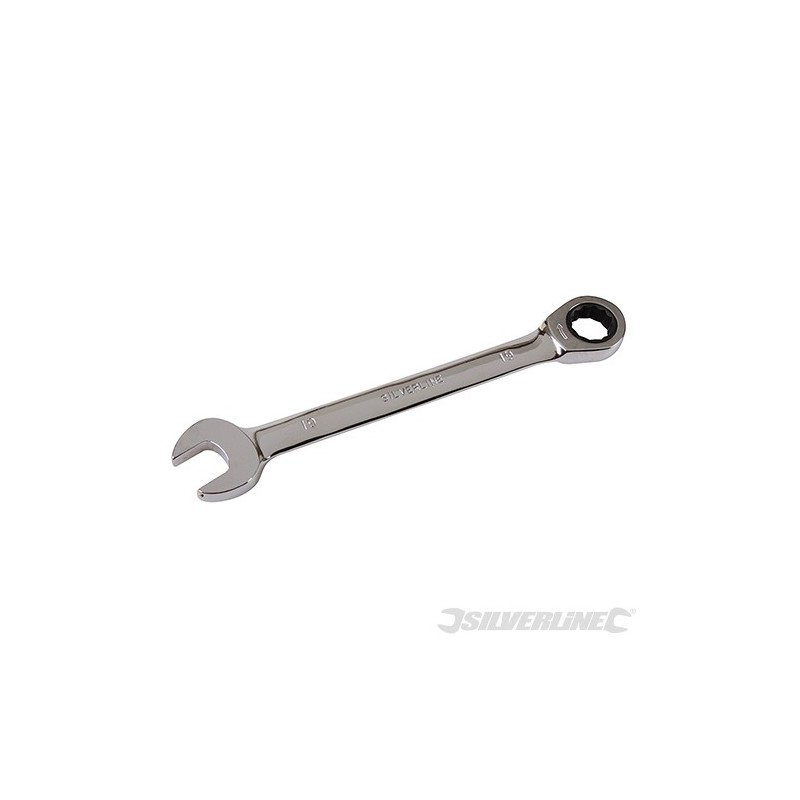 Hardened and tempered chrome vanadium metric spanner with mirror-polished finish. Chrome plated for corrosion resistance. 5° ratchet action. Provides easy access in tight spaces.