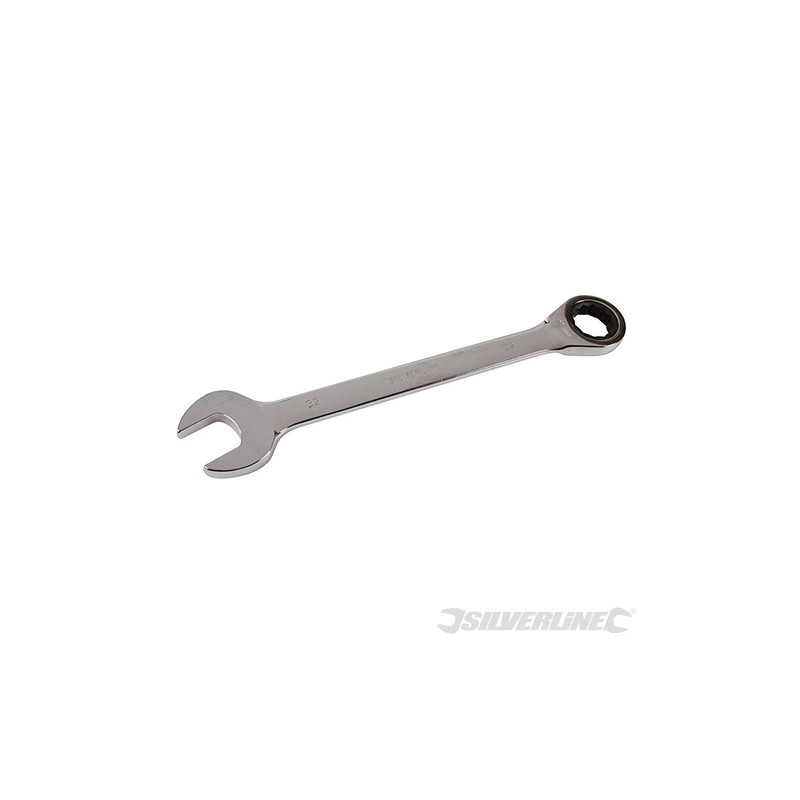 Hardened and tempered chrome vanadium metric spanner with mirror-polished finish. Chrome plated for corrosion resistance. 5° ratchet action. Provides easy access in tight spaces.