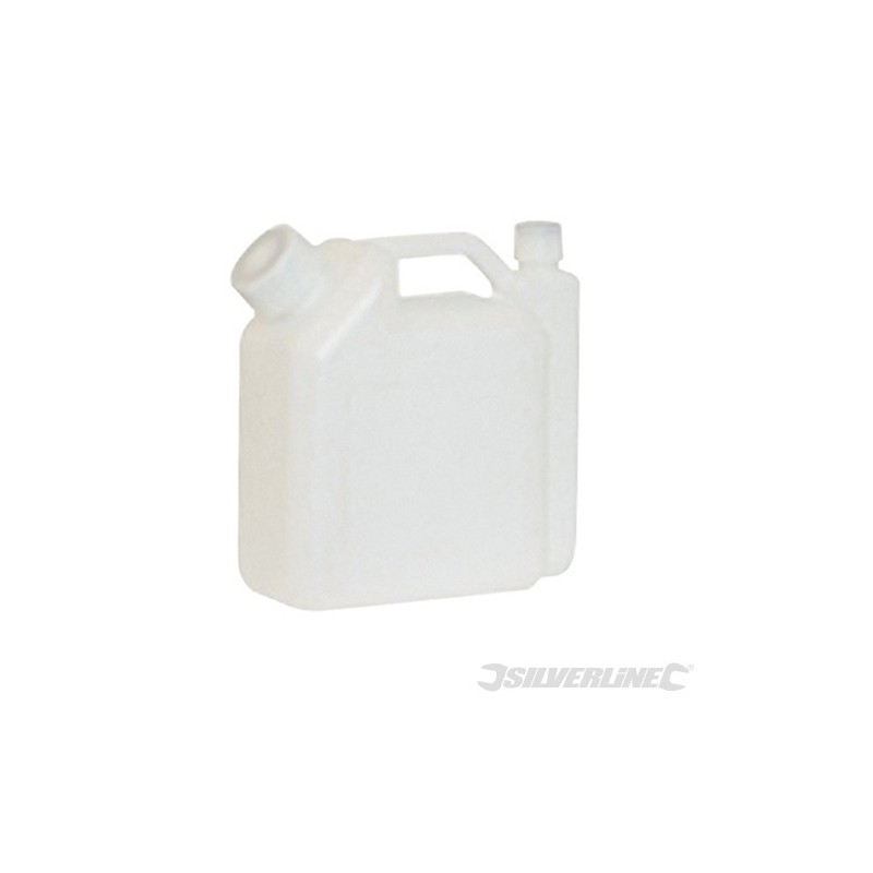Polyethylene mixing bottle for the preparation of accurate fuel/oil mixtures. Easy-pour spout and separate filling points for petrol and oil. Clear graduation marks for ratios 50:1, 40:1, 30:1, 25:1 and 20:1. For use with tools with 2-stroke petrol engines such as chainsaws, lawn mowers, line strimmers etc.