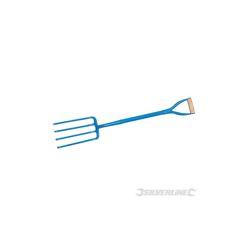 Hardened and tempered, single-piece, forged steel head and socket. Precision-welded tubular steel shaft with MYD handle and lacquered ash grip. Powder-coated finish. 4 x strong, chisel-pointed square prongs. For breaking and turning heavy soils and clay. Prong length 320mm. Head width 190mm.