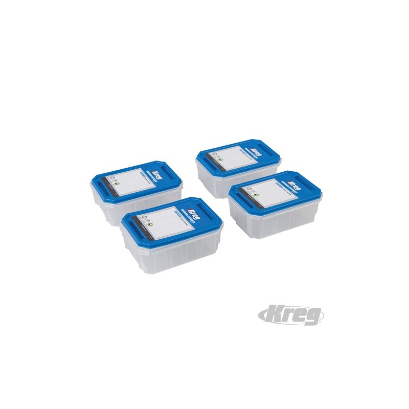 Transparent containers with write-on labels and lockable lids. Dry-erase surface for easy updating of labels. Stackable for convenient storage. Ideal for storing small tools and loose hardware. Fits in the Kreg Screw Organiser and the Kreg System Organiser. Small (W x H x D): 76 x 108 x 50mm (3" x 4-1/4" x 1-7/8"). Large (W x H x D): 114 x 158 x 50mm (4-1/2" x 6-1/4" x 1-7/8").
