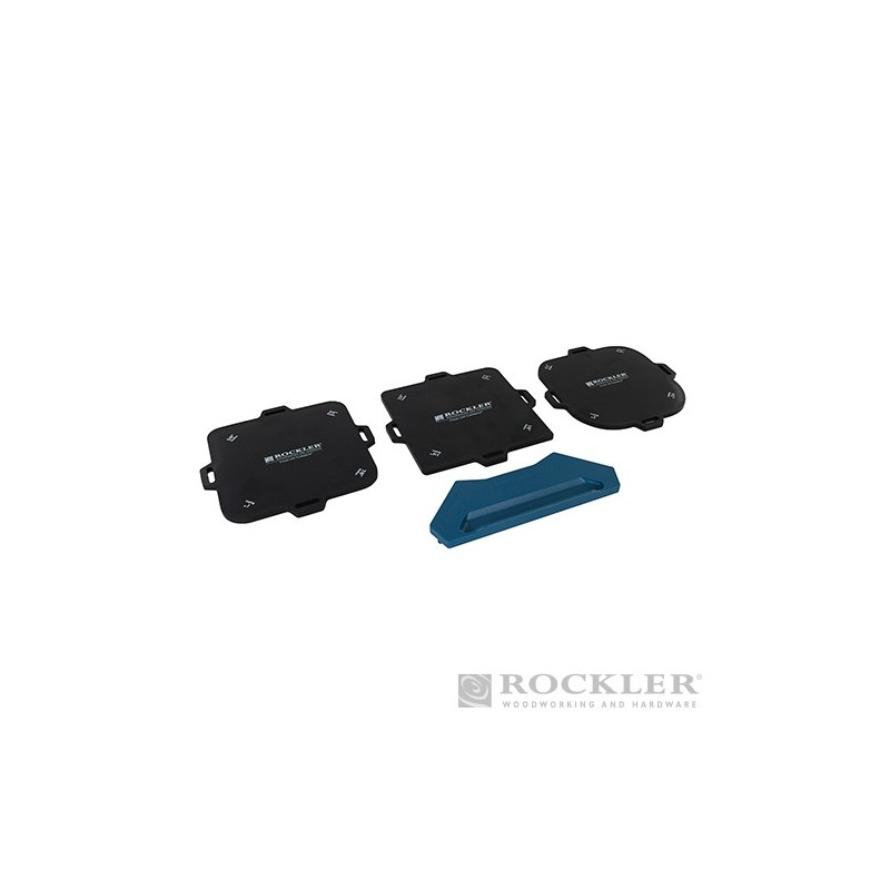 Make cutting smooth radii to soften 90° corners fast and flawless. Templates can be used alone to draft a pencil line or attached to included, marked handle for plotting on router table. Bottom of each template has rubber strips, which, combined with the handle, provide a strong grip. Size-marked templates can be used to create a dozen radii from 3 to 25mm (1/8 to 1") in 3mm (1/8") increments, and 32 to 51mm (1-1/4 to 2") radii in 6mm (1/4") increments. Ideal for any project with quarter-round corners, such as bookcase end panels, table tops, wall-mounted shelves and more.