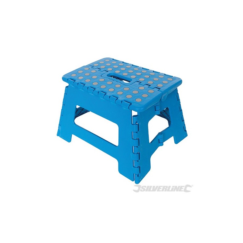 Strong, durable polypropylene construction with anti-slip surface. Folds flat for convenient storage and transportation. Ideal for use around the house, garage and workshop. Platform dimensions (L x H x W): folded 360 x 355 x 50mm, unfolded 360 x 285 x 220mm. Weight 1.145kg. 150kg capacity. Certified to EN14183.