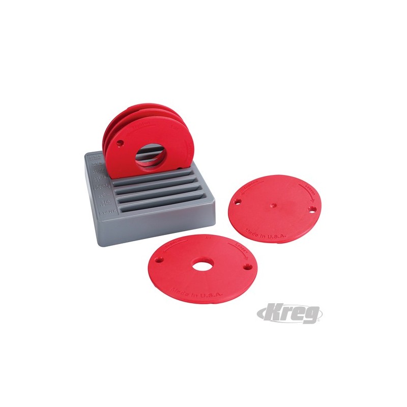 Allows customisation of the size of the opening around the bit. Includes rings with 3/4", 1-3/8", 1-5/8", and 2-1/8" openings, plus one blank ring that can be used to create custom-sized or zero-clearance ring. Includes moulded storage tray with slots for all 5 Level-Loc Reducing Rings, plus slots to hold the 3 rings supplied with the Precision Router Table Insert Plate or Precision Router Table Lift. Each slot is marked with the opening size, making it easy to keep the rings organised. Fits the Kreg Precision Router Table Insert Plate PRS3034, PRS3036, PRS3038.