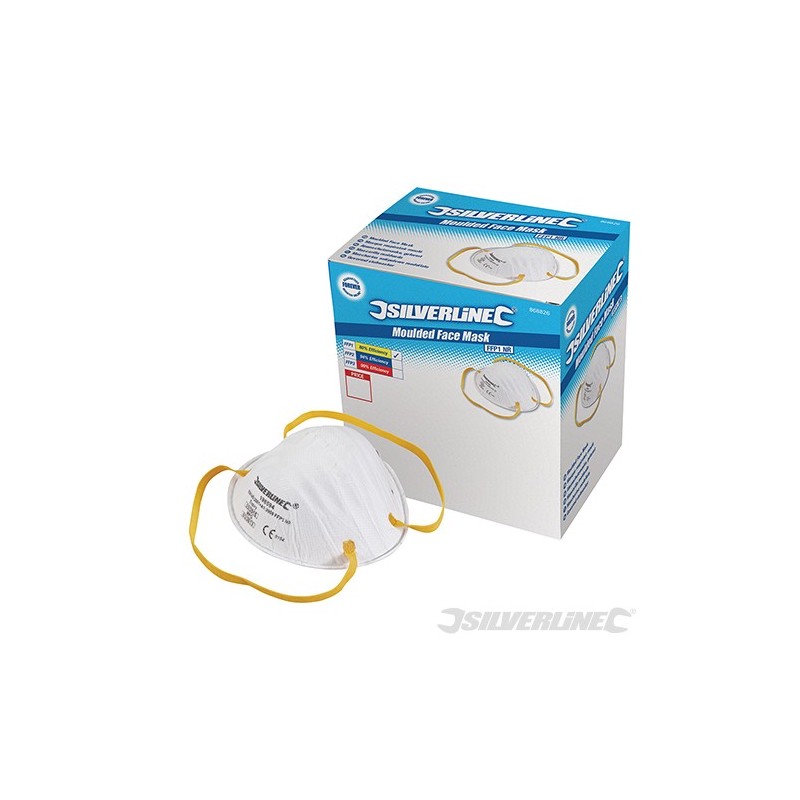 Protects against non-toxic dusts, fibres and aqueous mists. Elasticated strap and mouldable nosepiece allow a comfortable, contoured fit. Lightweight and durable. Disposable, single use. Conforms to EN149.