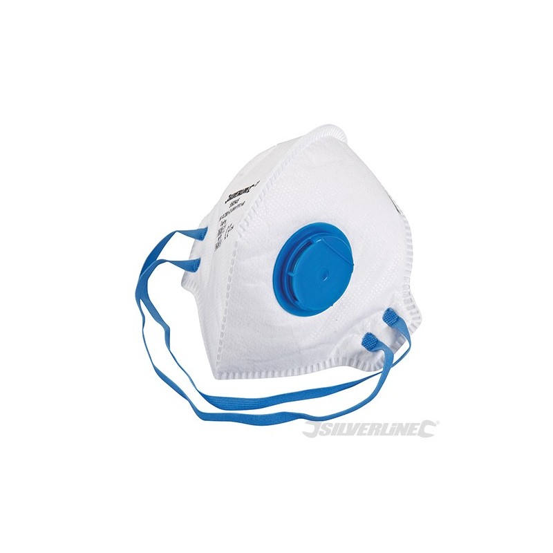 Protects against non-toxic dusts, fibres and aqueous mists. Elasticated strap, mouldable nosepiece and exhalation valve for a comfortable, contoured fit. Lightweight and durable. Disposable, single use. Conforms to EN149.