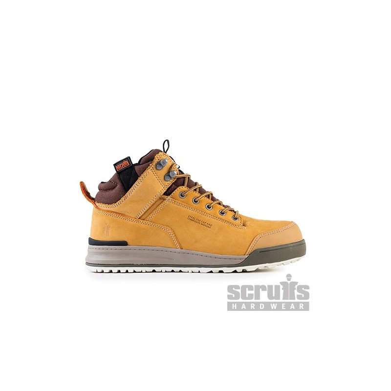 Hard wearing, all-round, mid-ankle work boot with high-spec S3 safety rating. Steel toe and composite midsole provide lightweight protection. Soft nubuck leather upper provides water-resistant protection from light moisture and delivers consistent comfort over long periods. Poron® sock provides extra cushioning, and durable moulded toe protects against scuffs. Anti-static with heat-resistant EVA rubber soles. Slip-resistant with underfoot shock absorption to reduce stress on the feet and ankles.
