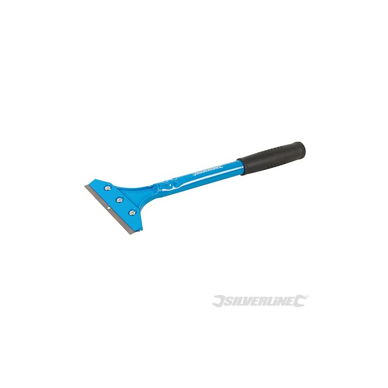 Heavy duty scraper with tubular steel shaft and rubber grip.Sharp 100mm blade mounted on angled head for effective scraping. Lightweight for comfortable use. Removes wallpaper, coverings, tiles, paint and adhesives. Compatible with Silverline Scraper Blades 10pk (CB36).