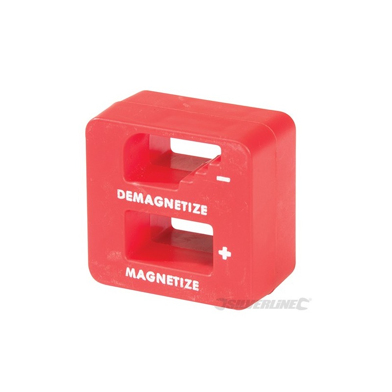 Pocket-sized square block. Magnetises most screwdrivers, tweezers and other small ferrous tools. Demagnetises screwdriver tips prior to working on sensitive components. Corrosion-resistant with protective polymer shell. Length 50mm x height 50mm x width 30mm. Weight 68g.