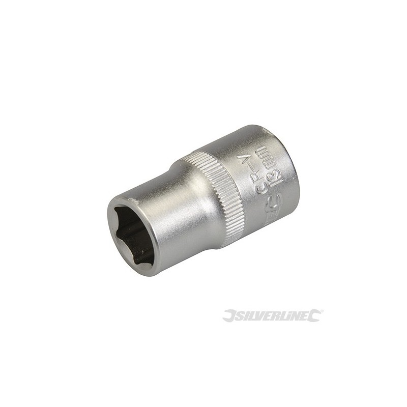 6-point hex socket for maximum torque transfer to the face of the fastener. Precision cold-forged, hardened and tempered chrome vanadium steel. Fully polished and nickel chrome-plated for durable corrosion resistance. Chamfered ends and thin walls for positive location on fastener. Knurled ring provides grip and control in the hand, and bearing hole provides solid connection to the tool.