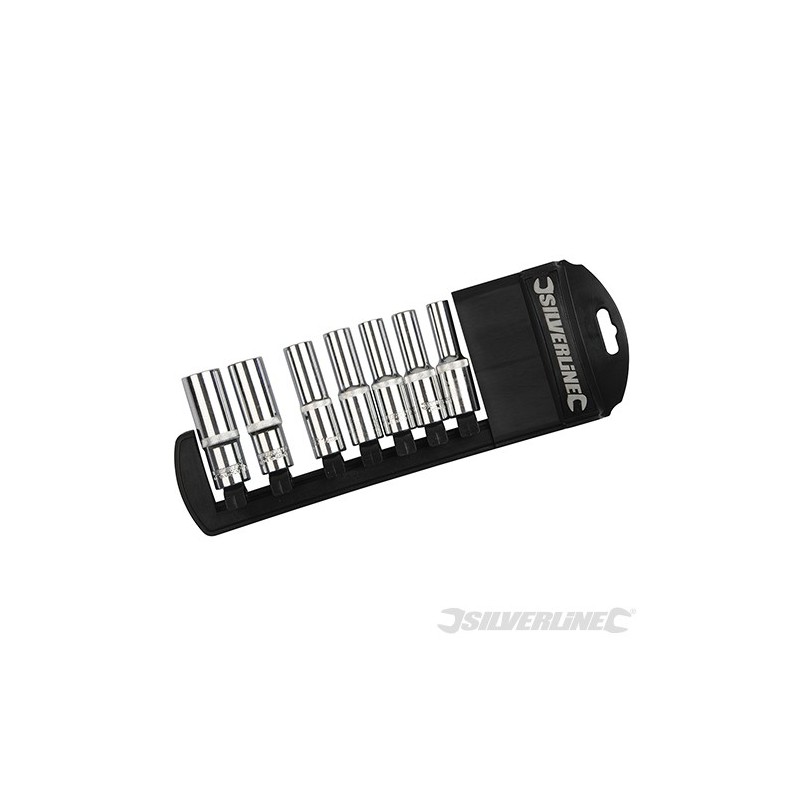 Deep 6-point hex socket for maximum torque transfer to the face of the fastener. Precision cold-forged, hardened and tempered chrome vanadium steel. Fully polished and nickel chrome-plated for durable corrosion resistance. Chamfered ends and thin walls for positive location on fastener. Contents: 10, 11, 12, 13, 14, 17 and 19mm.