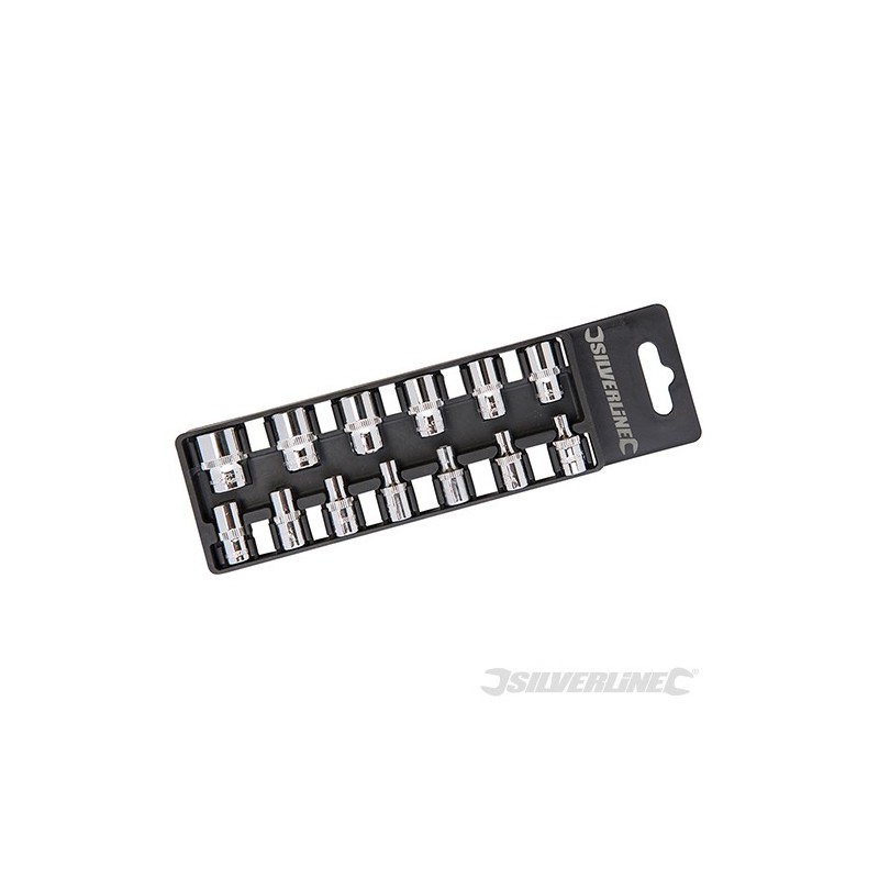 6-point hex socket for maximum torque transfer to the face of the fastener. Precision cold forged, hardened and tempered chrome vanadium steel. Fully polished and nickel chrome plated for durable corrosion resistance. Chamfered ends and thin walls for positive location on fastener. Knurled band for grip. Contents: 4, 4.5, 5, 5.5, 6, 7, 8, 9, 10, 11, 12, 13 and 14mm.