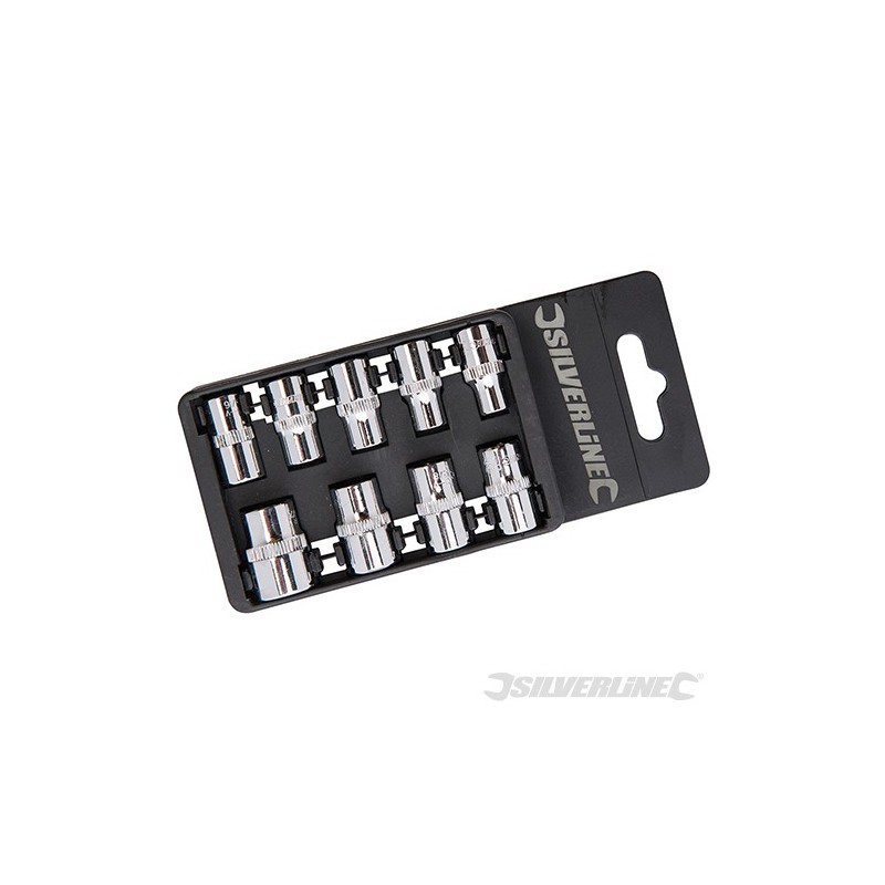 6-point hex socket for maximum torque transfer to the face of the fastener. Precision cold forged, hardened and tempered chrome vanadium steel. Fully polished and nickel chrome-plated for durable corrosion resistance. Chamfered ends and thin walls for positive location on fastener and knurled band for grip. Contents: 3/16", 7/32", 1/4", 9/32", 5/16", 11/32", 3/8", 7/16" and 1/2" AF.