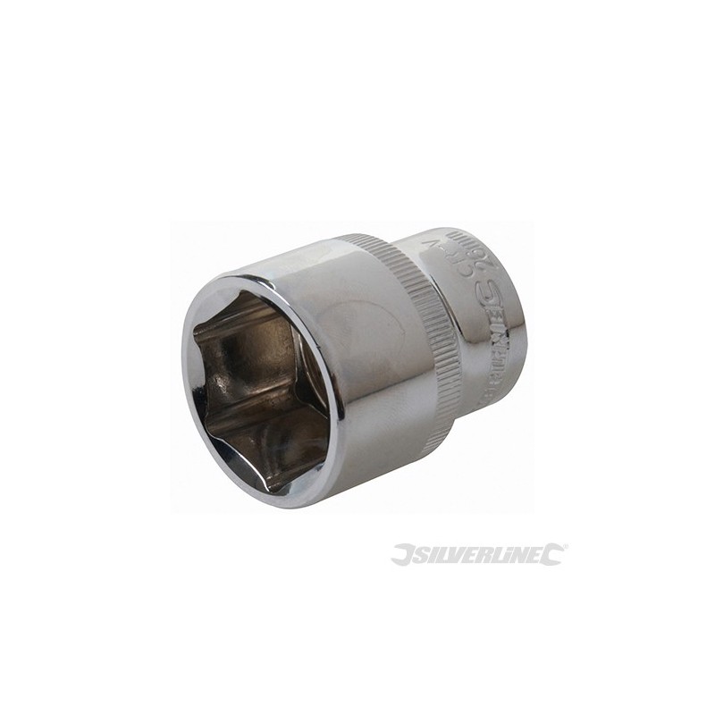 6-point hex socket for maximum torque transfer to the face of the fastener. Precision cold-forged, hardened and tempered chrome vanadium steel. Fully polished and nickel chrome-plated for durable corrosion resistance. Chamfered ends and thin walls for positive location on fastener. Knurled ring gives grip and control in the hand, and bearing hole provides solid connection to the tool.