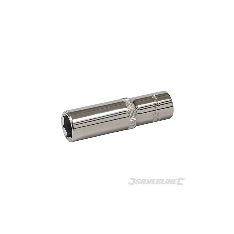 Deep 6-point hex socket for maximum torque transfer to the face of the fastener. Precision cold-forged, hardened and tempered chrome vanadium steel. Fully polished and nickel chrome plated for durable corrosion resistance. Chamfered ends and thin walls for positive location on fastener. Knurled ring provides grip and control in the hand, and bearing hole provides solid connection to the tool.
