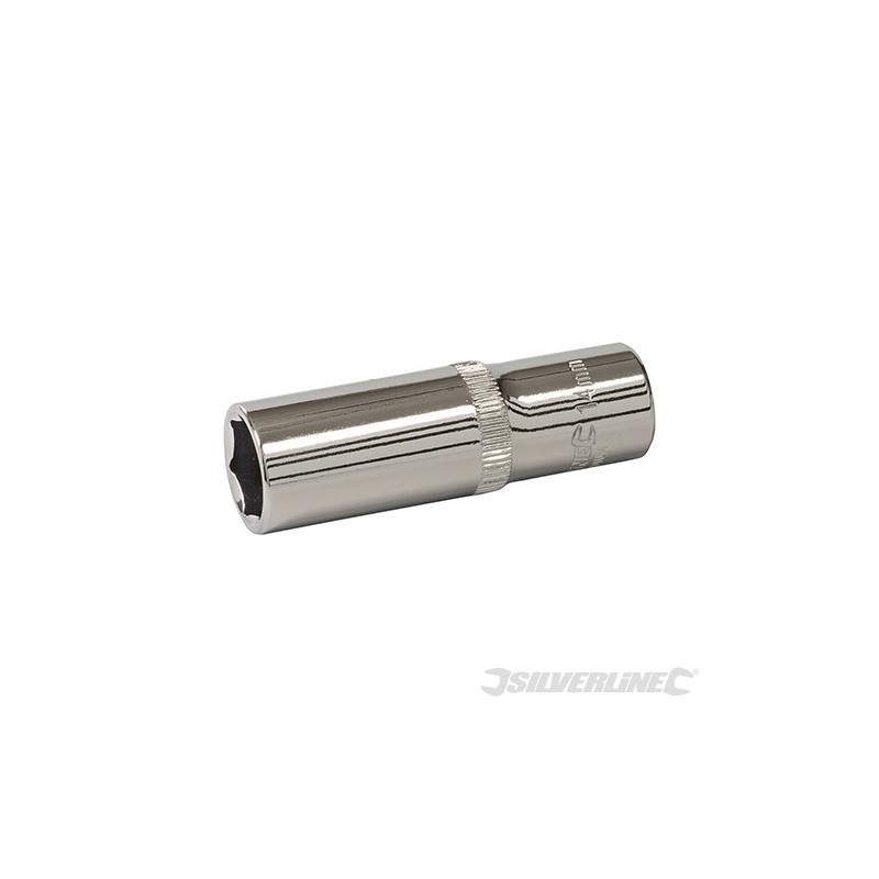Deep 6-point hex socket for maximum torque transfer to the face of the fastener. Precision cold-forged, hardened and tempered chrome vanadium steel. Fully polished and nickel chrome plated for durable corrosion resistance. Chamfered ends and thin walls for positive location on fastener. Knurled ring provides grip and control in the hand, and bearing hole provides solid connection to the tool.