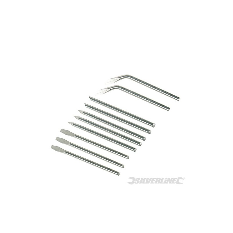 Pre-tinned soldering tips with 3.8mm external diameter. 15W and 25W are compatible with Silverline 15W Soldering Irons and 25W Soldering Irons . 40W is compatible with Silverline 40W Soldering Irons. Includes 3 x point, 3 x chisel, 2 x bent and 2 x cut-off tips.