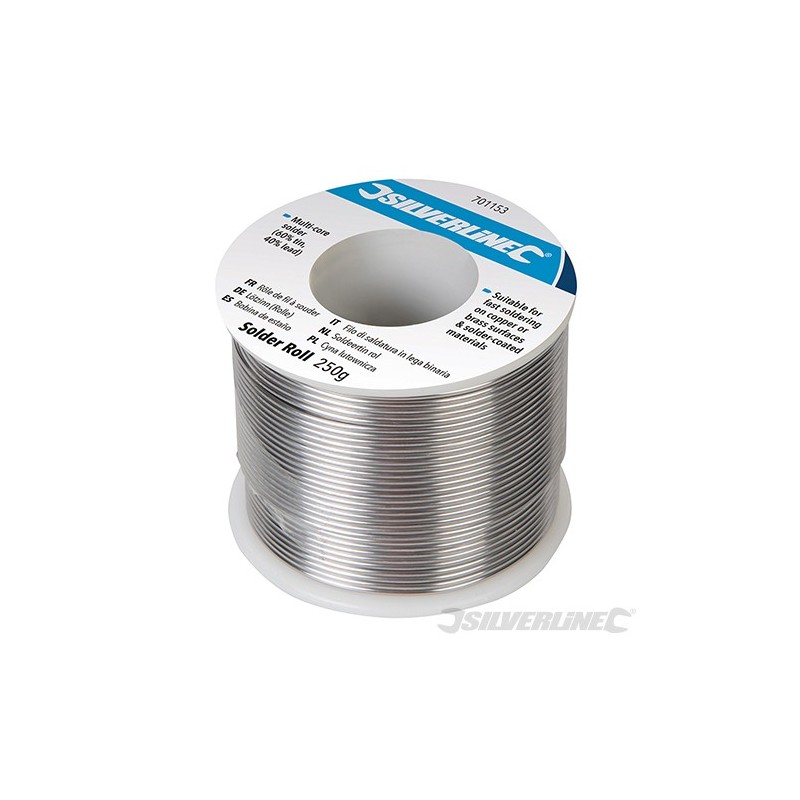 Multi-core solder wire (60% tin, 40% lead). Suitable for fast soldering on copper or brass surfaces and solder-coated materials. Ideal for use on micro electronics, fine wires and most other electrical and electronic soldering operations. External diameter 1mm.