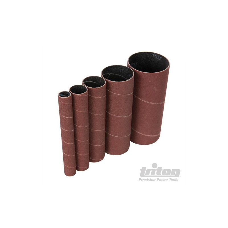 Aluminium oxide with cloth backing for use with the Triton Oscillating Spindle Sander TSPST450. For use on wood, plastic, ferrous and non-ferrous metals, and most non-metallic materials. Includes sizes 13, 19, 26, 38 and 51mm (1/2", 3/4", 1", 1-1/2" and 2"). Length 115mm (4-1/2").