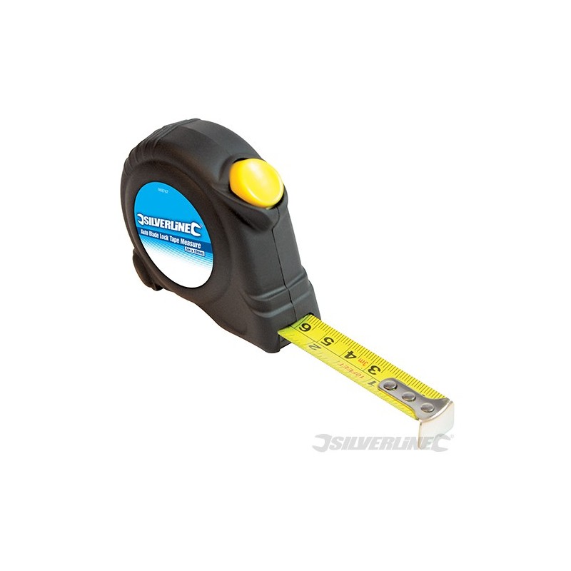 Scratch-resistant, nylon-coated blade. Clear metric and imperial graduations with highlighted joist marks every 16". Automatic lock when extended, retraction button, triple-riveted end hook and belt clip. Measures internal and external lengths.