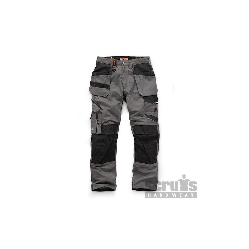Durable work trousers made from heavy duty twill fabric with stretch panels for comfort and flexibility. Two-layered reinforced seat for long-lasting performance. Tapered fit wider in the thigh and tapered at the hem for a modern and comfortable fit. Abrasion-resistant top-loading Cordura® knee pockets with two positions for comfort and durability. Hard-wearing abrasion-resistant hem and pocket reinforcements. Easy access holster pockets with tool loops for tool and accessory storage. Cargo pockets with zipped section, rule pocket, mobile phone pocket, hammer loops and D-ring. 65% polyester, 35% cotton, 250gsm.