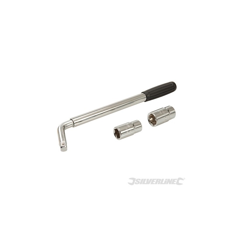 Telescopic wheel wrench with 1/2" square drive. Extends from 380mm - 500mm for extra leverage and compact storage. Ideal for garage or in-car storage. Suitable for home or commercial use. Fits most vehicle wheel nuts. Includes two reversible sockets (17 and 19mm, 21 and 23mm).