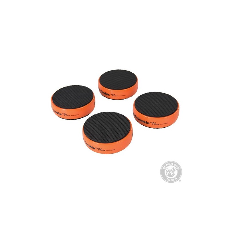 Newly redesigned, friction rubber pads hold projects steady while sawing, sanding, or routing without the use of clamps. A threaded insert is included for adding a variety of accessories that elevate your work and provide plenty of clearance for all project needs. Optional accessories available for the Bench Cookie® Plus: Bench Cookie® Finishing Cones, Bench Cookie® Sawhorse Clips, Bench Cookie® Finishing Bridges, and Bench Cookie® Risers.